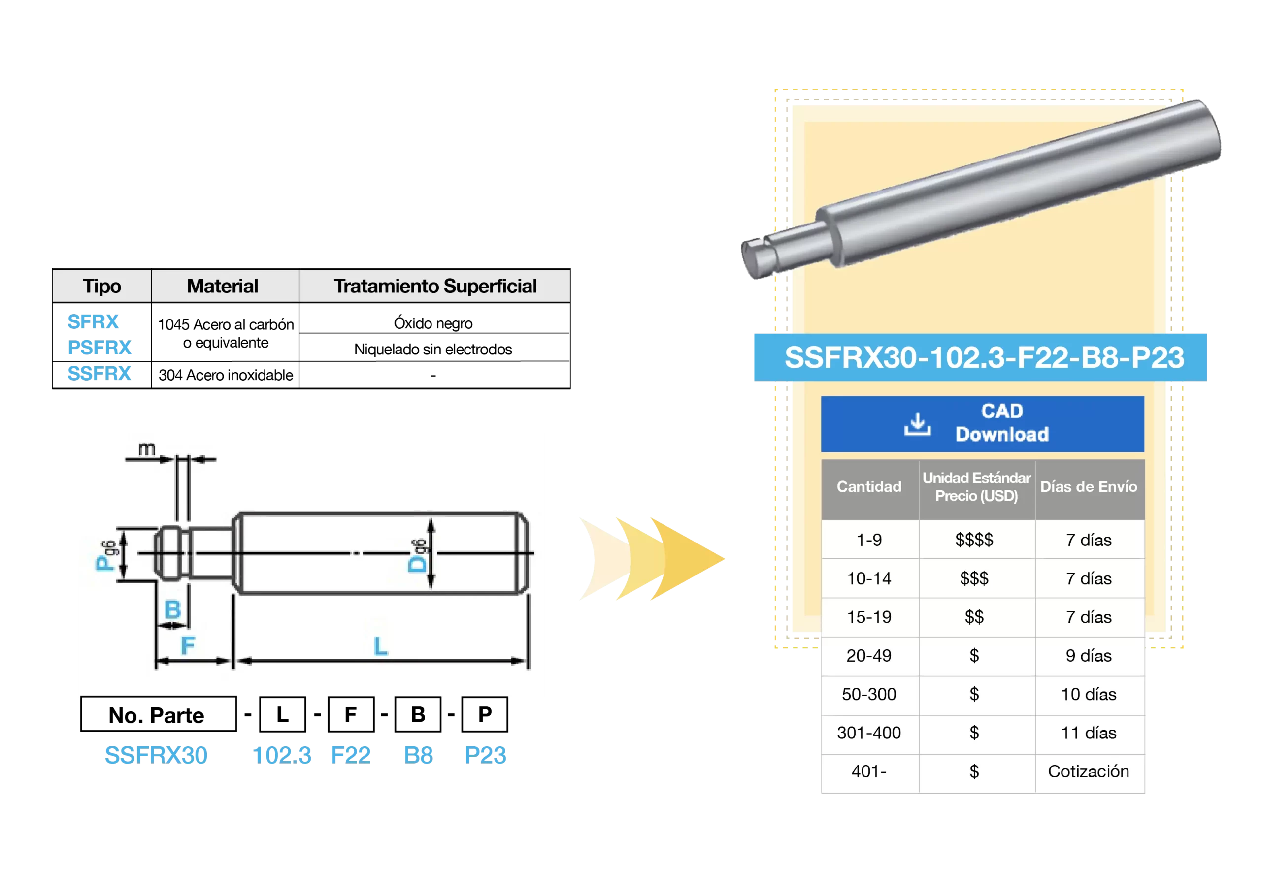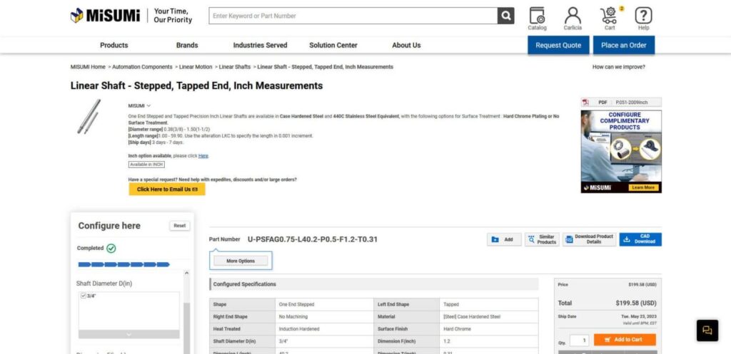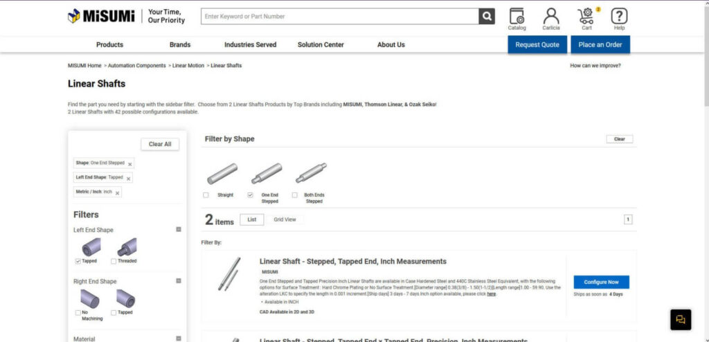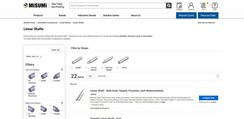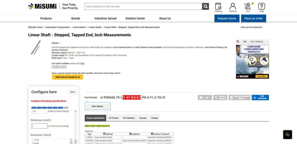 Como ya se ha mencionado, el modelo de configurabilidad MISUMI facilita la selección de dimensiones, materiales, acabados y otras características.