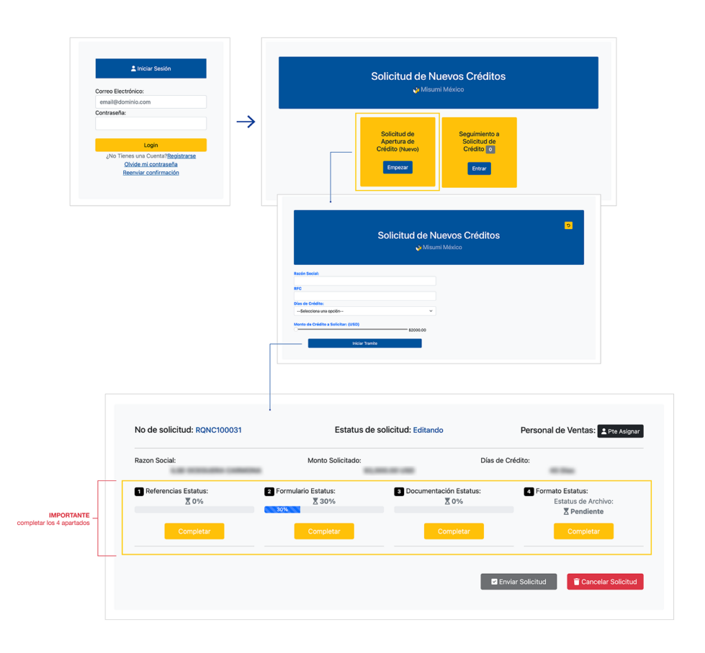 Una vez registrado en el Portal, deberás entrar y dar clic en Solicitud de Apertura de Crédito (Nuevo).